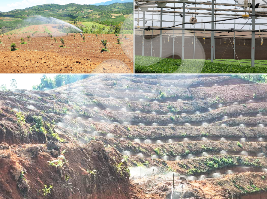 HỆ THỐNG TƯỚI PHUN MƯA CHO HOA MÀU NGOÀI TRỜI